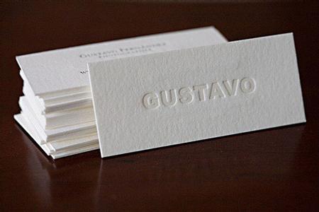 凹凸壓印習稱“凹凸印刷”、“軋凹凸”或“壓凸印”,該工藝**的特色是不用油墨,而是將圖案雕刻在金屬版上,或凹版或凸版,像打鋼印一樣,給凹凸版以機械壓力,單純利用壓力在已經印好的彩色印刷品或空白的紙上壓出凹凸圖形和花紋。凹凸名片的優點是質感強烈,有浮雕的效果。